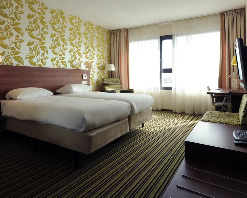 De Atrium kamer is modern en sfeervol ingericht. De kamer is voorzien van een bureau, gratis WIFI, televisie, koelkastje, klimaatbeheersing, zitje, voldoende kastruimte, kluisje, telefoon en föhn.